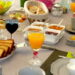 Notre petit déjeuner gourmand est composé de produits frais : orange perssée, salade de fruits, patisseries et confitures “maison”