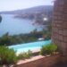 The living room with TV, DVD, wood fire fireplace opens through a glass door to a large terrace to the south partially covered, la vue sur la mer et sur la piscine à débordement est exceptionnelle, sans vis à vis.