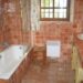 Une salle de bain équipée de 2 vasques, un sèche-serviette électrique et une baignoire-douche, des tiroirs de rangement, s’ouvre à l’est sur le jardin