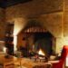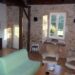 Gran salón en piedras y vigas a la vista con una chimenea tradicional correziano “cantou”.